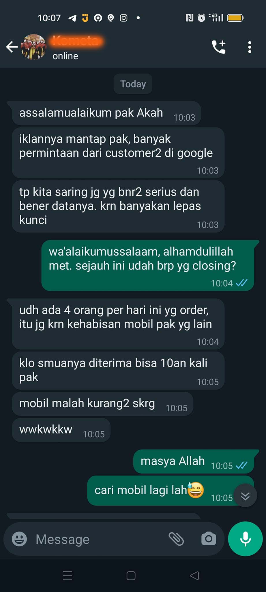 Pemesanan sewa mobil mudah, cukup dengan menggunakan WhatsApp.